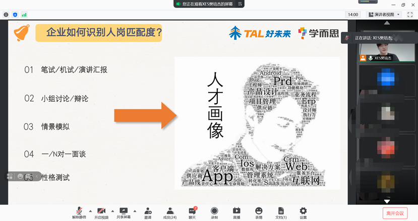 2021-05-25 文:麻豆a片 图:麻豆a片2021年5月20日晚上7:30,学而思之“手把手教你求职”社人专场空中分享会在腾讯会议顺利召开,本次分享会由学而思HR樊培杰主持与分享。